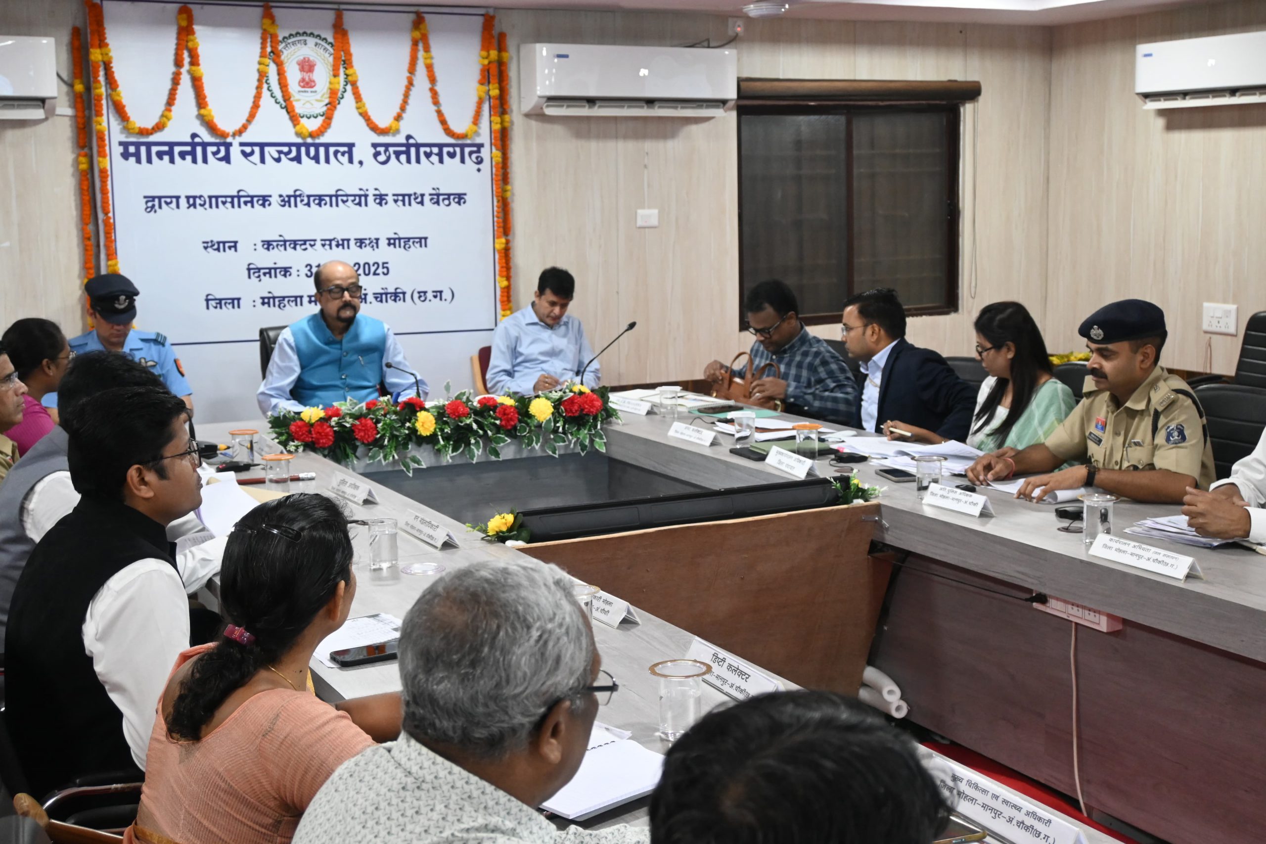 मोहला। राज्यपाल श्री रमेन डेका आज जिला मोहला मानपुर अंबागढ़ जिले के प्रवास पर रहे। छत्तीसगढ़ राज्य निर्माण के बाद पहली बार जिला मोहला मानपुर अंबागढ़ चौकी जिले की सीमा क्षेत्र में पहली बार राज्यपाल का आगमन हुआ। यह पहला मौका था, जब प्रदेश का राज्यपाल जिले की सीमा में पहुंचे। राज्यपाल ने यहां जिला कार्यालय के सभाकक्ष में प्रशासनिक अधिकारियों की बैठक लेकर जिले में चलाये जा रहे महत्वपूर्ण कार्यक्रमों, योजनाओं और सेवाओं की समीक्षा की। राज्यपाल श्री रमेन डेका ने इस अवसर पर अधिकारियों से कहा कि अधिकारीगण प्रशासनिक उत्तरदायित्व और जवाबदेही के साथ आम जनता के प्रति अपनी जिम्मेदारी को समझें। जनता से संवाद करें और उसकी समस्या को सुनकर सुलझाएं। अधिकारीगण सुनिश्चित करें कि वे जनता के लिए कार्य करने हेतु नियुक्त कीये गए हैं। बैठक में उन्होंने अपनी मंशा जाहिर करते हुए कहा कि छत्तीसगढ़ राज्य विकसित राज्य बने और निरंतर प्रगति की पथ पर आगे बढ़े। राज्य को विकसित राज्य और अग्रणी राज्य बनाने में अधिकारीगण अपनी सार्थक भूमिका का निर्वहन करें।