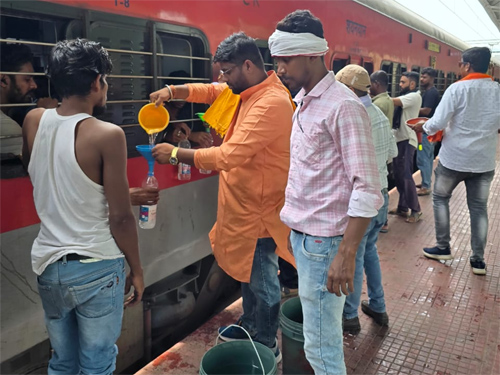 शक्तिधाम धर्मार्थ सेवा समिति द्वारा रेल यात्रियों को निःस्वार्थ जल सेवा