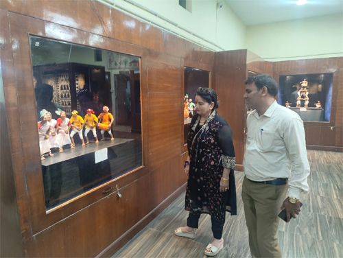 खैरागढ़। इंदिरा कला संगीत विश्व विद्यालय खैरागढ़ की कुलपति प्रो. डॉ. लवली शर्मा ने रायपुर के महंत घासीदास स्मारक संग्रहालय का अवलोकन किया। सर्वप्रथम उन्होंने छत्तीसगढ़ प्रदेश के विभिन्न स्थानों पर मौजूद प्राचीन मंदिरों का अवलोकन किया और इसके निर्माण सहित अन्य विषयों पर जानकारी प्राप्त की। इसके बाद प्रदेश के विभिन्न प्रांतों से संरक्षित किए गए प्राचीन प्रतिमाओं से भी अवगत हुई और इसकी विशेषताओं को जाना। साथ ही कुलपति ने सिरपुर उत्खनन में प्राप्त लोहे की वस्तुओं, पूजा उपासना की सामग्री, पाषाण युगीन शस्त्र, ताम्र युग की संस्कृति एवं कांस्य संस्कृति सहित अनेक वस्तुओं से अवगत हुई। इसके बाद विभिन्न लिपियों में लिखे गए शिलालेख एवं काष्ठ स्तंभ लेख से भी परिचित हुई और इसे प्राचीन भारतीय इतिहास और संस्कृति के महत्वपूर्ण स्रोत बताया। इसके बाद कुलपति ने प्राकृतिक वन्य जीवो के संरक्षण के लिए बनाई गई प्रदर्शनी एवं प्राचीन अस्त्र-शस्त्र से भी अवगत हुई। साथ ही आदिवासी कलाओं को संरक्षित करने हेतु बनाए गए आदिवासी कला दीर्घा का भी अवलोकन की, जहां आदिवासी वाद्य यंत्रों व कलाओं सहित विभिन्न विषयों का भी अवलोकन की।