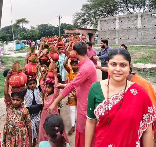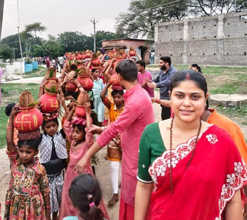 मां भैरवी शक्तिधाम खैरा में कलश यात्रा गाजे-बाजे के साथ निकली