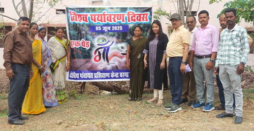 राजनांदगांव। विश्व पर्यावरण दिवस के अवसर पर क्षेत्रीय पंचायत एवं ग्रामीण विकास प्रशिक्षण केन्द्र बरगा में एक पेड़ मां के नाम अभियान के तहत पौधरोपण किया गया। इस अवसर पर मुख्य कार्यपालन अधिकारी जिला पंचायत सुश्री सुरूचि सिंह ने एक पेड़ मां के नाम अंतर्गत फलदार पौधे का रोपण किया। जिला पंचायत सीईओ ने सभी को विश्व पर्यावरण दिवस पर पौधरोपण करने के साथ ही उसकी सुरक्षा करने की अपील की। उन्होंने कहा कि आने वाली पीढ़ी के लिए वृक्षों की रक्षा करना होगा। छायादार एवं फलदार वृक्ष वन्य प्राणियों व पक्षियों का आश्रय स्थल होता है। इसके साथ ही उन्हें वृक्षों से भोजन भी उपलब्ध होता है। इस अवसर पर ग्राम पंचायत बरगा के सरपंच विनोद कुमार कंवर, उप सरंपच जागेश्वर यादव, प्राचार्य देवन्द्र कुमार कौशिक, सचिव श्रीमती सुनीता साहू, वार्ड पंच श्रीमती मिनाक्षी अंबादे एवं श्रीमती चमेली कंवर, रोजगार सहायक श्रीमती लता ठाकुर, कार्यालयीन कर्मचारी अनिल साव, रणजीत सिंह, लोकेश सिन्हा, रोहित यादव सहित अन्य ग्रामीण उपस्थित थे।