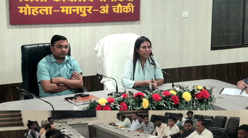 मोहला। प्रभारी कलेक्टर श्रीमती भारती चंद्राकर ने कलेक्टर कार्यालय के सभाकक्ष में अधिकारियों की बैठक ली। बैठक में उन्होंने नवीन स्थानांतरण नीति एवं आगामी धरती आबा जनजाति ग्राम उत्कर्ष अभियान के संबंध में विस्तार से चर्चा की।