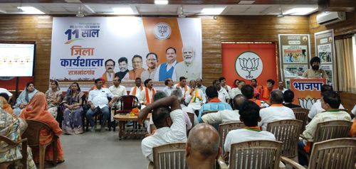 राजनांदगांव। भारतीय जनता पार्टी द्वारा पूरे देश में प्रधानमंत्री नरेंद्र मोदी के नेतृत्व वाली भाजपा सरकार के 11 साल बेमिसाल संकल्प से सिद्धि पखवाड़ा कार्यक्रम मानने का रही है, इसी कड़ी में जिला भाजपा द्वारा जिला अध्यक्ष कोमल सिंह राजपूत के नेतृत्व में वृहद कार्यशाला का आयोजन जीई रोड स्थित भाजपा कार्यालय में किया गया। भाजपा संकल्प से सिद्धि कार्यक्रम के तहत भाजपा 9 जून से 21 जून तक विभिन्न कार्यक्रम आयोजित करने जा रही है, जिसके तहत कार्यशाला, योग दिवस सहित अन्य कार्यक्रमों से लेकर जनता के बीच पहुंचकर विभिन्न कार्यक्रम करने की योजना भाजपा ने तय की है।