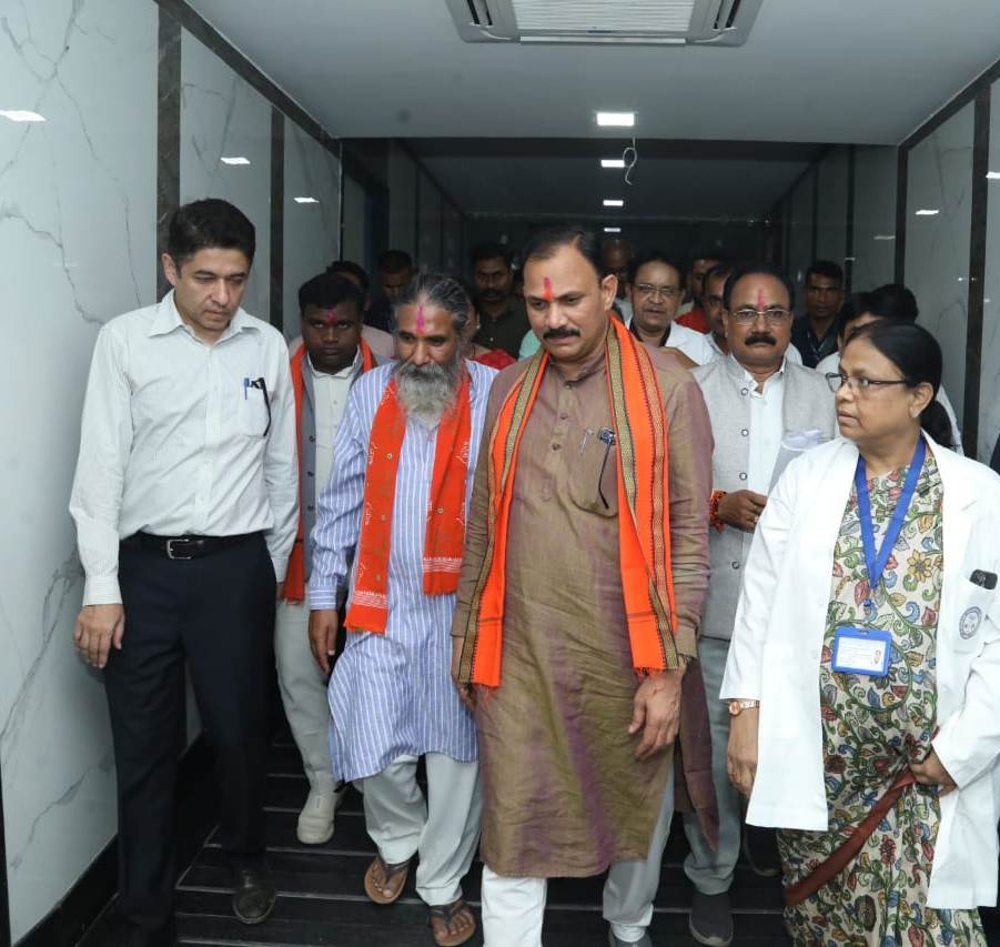 स्वास्थ्य मंत्री श्री श्याम बिहारी जायसवाल ने एमआरआई कक्ष, कंसोल रूम व डायलिसिस रूम का निरीक्षण किया। उन्होंने डायलिसिस कक्ष को आवश्यक उपकरण जैसे एयर कंडीशनर लगाने तथा विस्तार करने के आदेश दिए। अस्पताल परिसर में जहां पंखों की कमी थी, एक सप्ताह के भीतर स्थापित करने के निर्देश जारी किए। पुरूष वार्ड में श्री करूराम से मुलाकात कर शीघ्र स्वास्थ्य लाभ की कामना की। जनरल वार्ड में 86 वर्षीय श्री बृजलाल साहू बागोडार जिसके पैरों में सूजन थी, उनसे बातचीत की। इस पर बृजलाल ने कहा की उनका आयुष्मान कार्ड के माध्यम से मुफ्त उपचार हो रहा है। इस पर स्वास्थ्य मंत्री ने कहा कि ये विष्णु का सुशासन है यहां अच्छे से इलाज होता है। इस दौरान श्रीमती रामबती निषाद (दुधावा) से आशीर्वाद लेते हुए उन्हें “ठीक हो जाबे, दाई, तय चिंता झन कर” कहकर उनका उत्साहवर्धन किया। स्वास्थ्य मंत्री ने दोनों अस्पतालों में रोगियों को गुणवत्तापूर्ण सेवाएं सुनिश्चित करने एवं समयबद्ध रूप से आवश्यक सुधार कार्य पूर्ण करने का पुनः आश्वासन दिया।