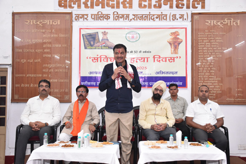 इस अवसर पर लोकतंत्र सेनानी मीसा बंदी कुलवंत सिंह कक्कड़, मीसा बंदी की पत्नी श्री निर्वाणी की पत्नी श्रीमती बसंतलता निर्वाणी, मीसा बंदी धनुकलाल के पोते एवं परिजनों को सम्मानित किया गया। इस अवसर पर समाज सेवी कोमल सिंह राजपूत, अपर कलेक्टर प्रेम प्रकाश शर्मा, नगर निगम आयुक्त अतुल विश्वकर्मा, एसडीएम खेमलाल वर्मा एवं अन्य जनप्रतिनिधि, अधिकारी एवं नागरिक उपस्थित रहे। इस अवसर पर संविधान की हत्या आपातकाल को घटना क्रम को वीडियो के माध्यम से दिखाया गया तथा लोकतांत्रिक मूल्यों को कायम रखने एवं संविधान के संरक्षण के लिए आपातकाल के दुष्परिणाम को बताया गया। आपातकाल के 50 वर्ष पूर्ण होने पर आपातकाल से प्रभावित जन नेताओं, पत्रकारों एवं नागरिकों के सम्मान में उस कालखंड को याद करते हुए यह दिन मनाया जा रहा है।