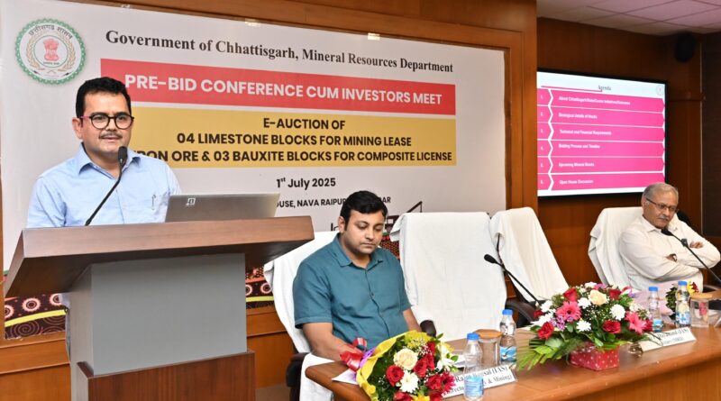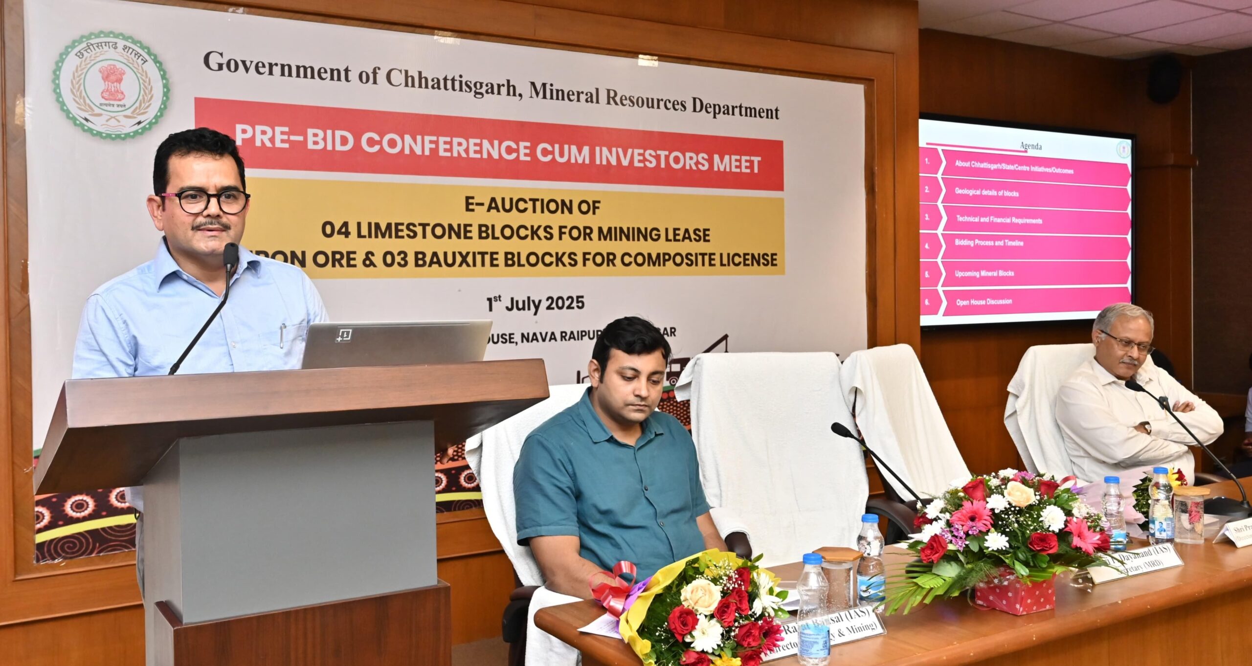 रायपुर। मुख्यमंत्री श्री विष्णु देव साय के मार्गदर्शन में छत्तीसगढ़ में खनिज क्षेत्र में एक महत्वपूर्ण पहल करते हुए चूना पत्थर, लौह अयस्क और बॉक्साइट खनिज के नए ब्लॉकों की ई-नीलामी प्रक्रिया प्रारंभ हो गई है। इसी क्रम में आज नवा रायपुर अटल नगर में निवेशकों के लिए प्री-बिड सम्मेलन का आयोजन किया गया। इस प्री-बिड सम्मेलन का उद्देश्य राज्य की समृद्ध खनिज संपदा को औद्योगिक निवेश के लिए उपलब्ध कराना, स्थानीय विकास को बढ़ावा देना तथा पारदर्शी ई-नीलामी प्रणाली के माध्यम से निवेशकों को आकर्षित करना है।