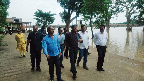 मोहारा नदी का जलस्तर बढ़ा, महापौर यादव ने किया निरीक्षण
