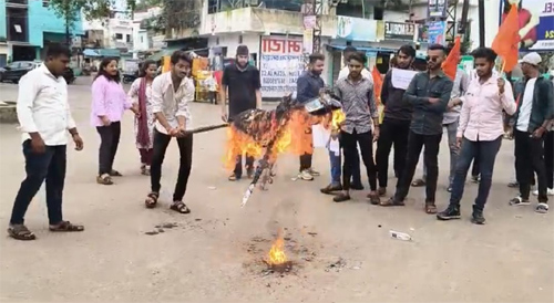 छात्रा सौम्याश्री की आत्महत्या पर आक्रोश, एबीवीपी ने किया विभागाध्यक्ष का पुतला दहन