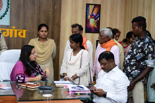 राजनांदगांव। कलेक्टर डॉ. सर्वेश्वर नरेन्द्र भुरे के निर्देशानुसार सीईओ जिला पंचायत सुश्री सुरूचि सिंह ने कलेक्टोरेट सभाकक्ष में आयोजित साप्ताहिक जनदर्शन में जिले के विभिन्न स्थानों से आए जनसामान्य की शिकायत एवं समस्याओं को गंभीरतापूर्वक सुनी। सीईओ जिला पंचायत ने संबंधित विभागीय अधिकारियों को प्राप्त सभी आवेदनों को प्राथमिकता के साथ निराकरण करने के निर्देश दिए हैं। उन्होंने नागरिकों की समस्याओं का निराकरण करते हुए उन्हें शासन की विभिन्न योजनाओं से लाभान्वित करने कहा। आवेदनों का अवलोकन कर नियमानुसार पात्र हितग्राहियों को शासकीय योजनाओं से लाभान्वित करने के लिए निर्देश दिए। जनदर्शन में प्रधानमंत्री आवास योजना से लाभान्वित करने, अतिक्रमण हटाने, आधार कार्ड अपडेशन, ऑनलाईन रिकार्ड दुरूस्त करने, आर्थिक सहायता, नजूल भूमि का पट्टा बनाने, राशन कार्ड बनवाने सहित विभिन्न शासकीय योजनाओं से लाभ दिलाने जैसे आवेदन प्राप्त हुए। इस अवसर पर अपर कलेक्टर सीएल मारकण्डेय, अपर कलेक्टर प्रेम प्रकाश शर्मा, नगर निगम आयुक्त अतुल विश्वकर्मा, एसडीएम राजनांदगांव खेमलाल वर्मा, एसडीएम डोंगरगढ़ अभिषेक तिवारी सहित अन्य अधिकारी उपस्थित थे।