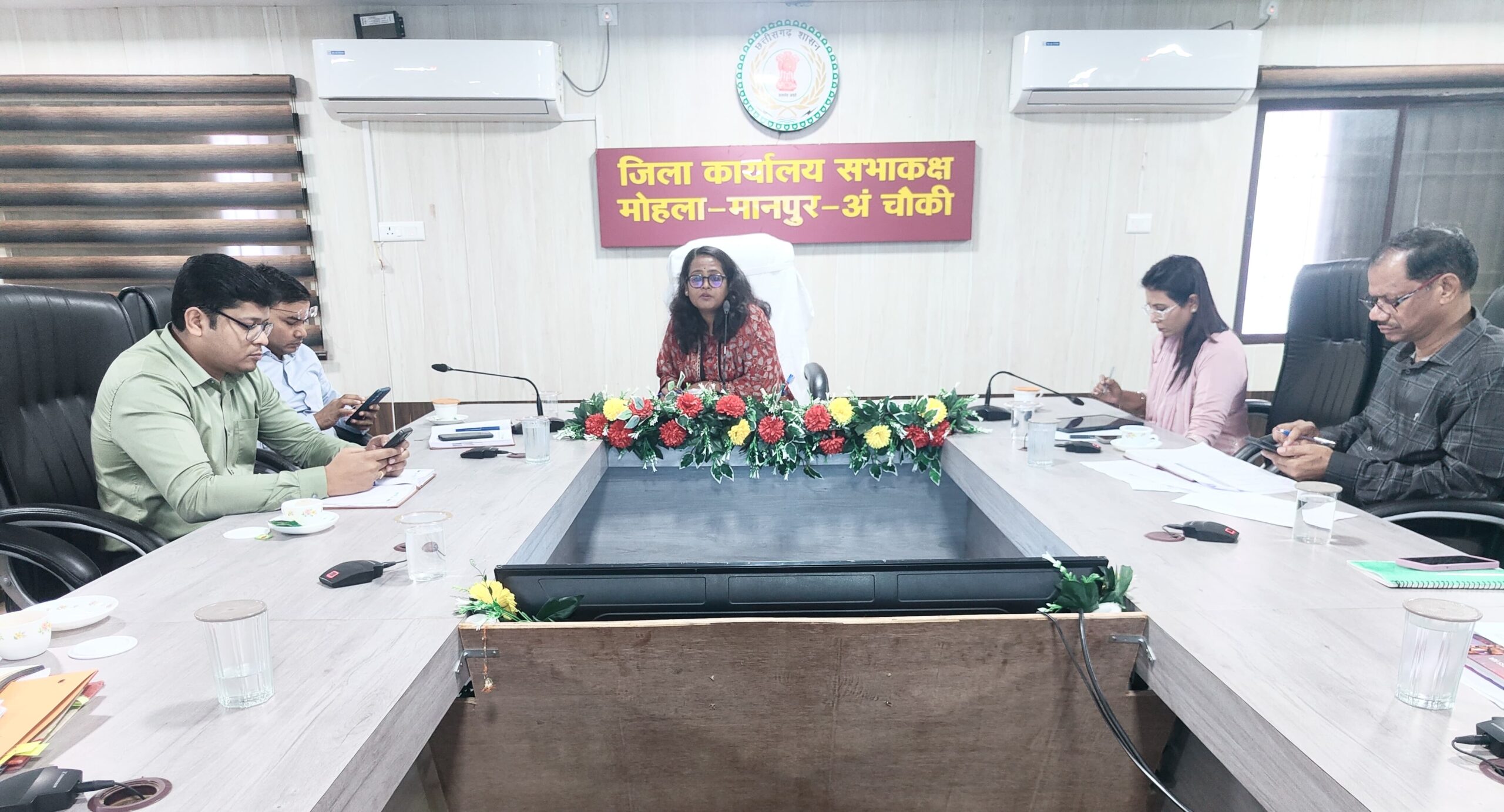 बैठक में सीईओ जिला पंचायत श्रीमती भारती चन्द्राकर, अपर कलेक्टर श्री विजेन्द्र सिंह पाटले, एसडीएम मोहला श्री हेमेन्द्र भुआर्य, डिप्टी कलेक्टर श्री दुकालू राम ध्रुव सहित संबंधित विभागों के अधिकारी उपस्थित रहे।