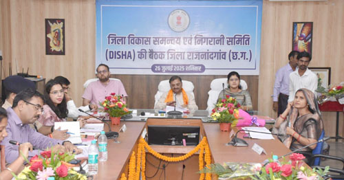 राजनांदगांव। सांसद संतोष पाण्डेय की अध्यक्षता में आज कलेक्टोरेट सभाकक्ष में जिला विकास समन्वय एवं निगरानी समिति (दिशा) की बैठक आयोजित की गई। बैठक में विधायक डोंगरगढ़ श्रीमती हर्षिता बघेल, जिला पंचायत अध्यक्ष श्रीमती किरण वैष्णव, कलेक्टर डॉ. सर्वेश्वर नरेन्द्र भुरे, वनमंडलाधिकारी आयुष जैन, जिला पंचायत सीईओ सुश्री सुरूचि सिंह, उपस्थित थे।