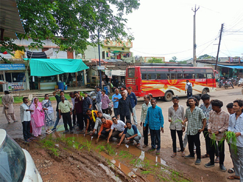 जब प्रदर्शनकारी सड़क पर धान की रोपाई कर रहे थे, उसी समय लोनिवि के कर्मचारी भी हरकत में आ गए। परमानेंट गैंग के मजदूरों ने बोरियों में गिट्टी और डस्ट भरकर गड्ढों में भराई शुरू की। राजीव गांधी चौक से लाल भीष्मदेव शाह चौक तक के गड्ढों को डस्ट से भरने का काम किया गया।