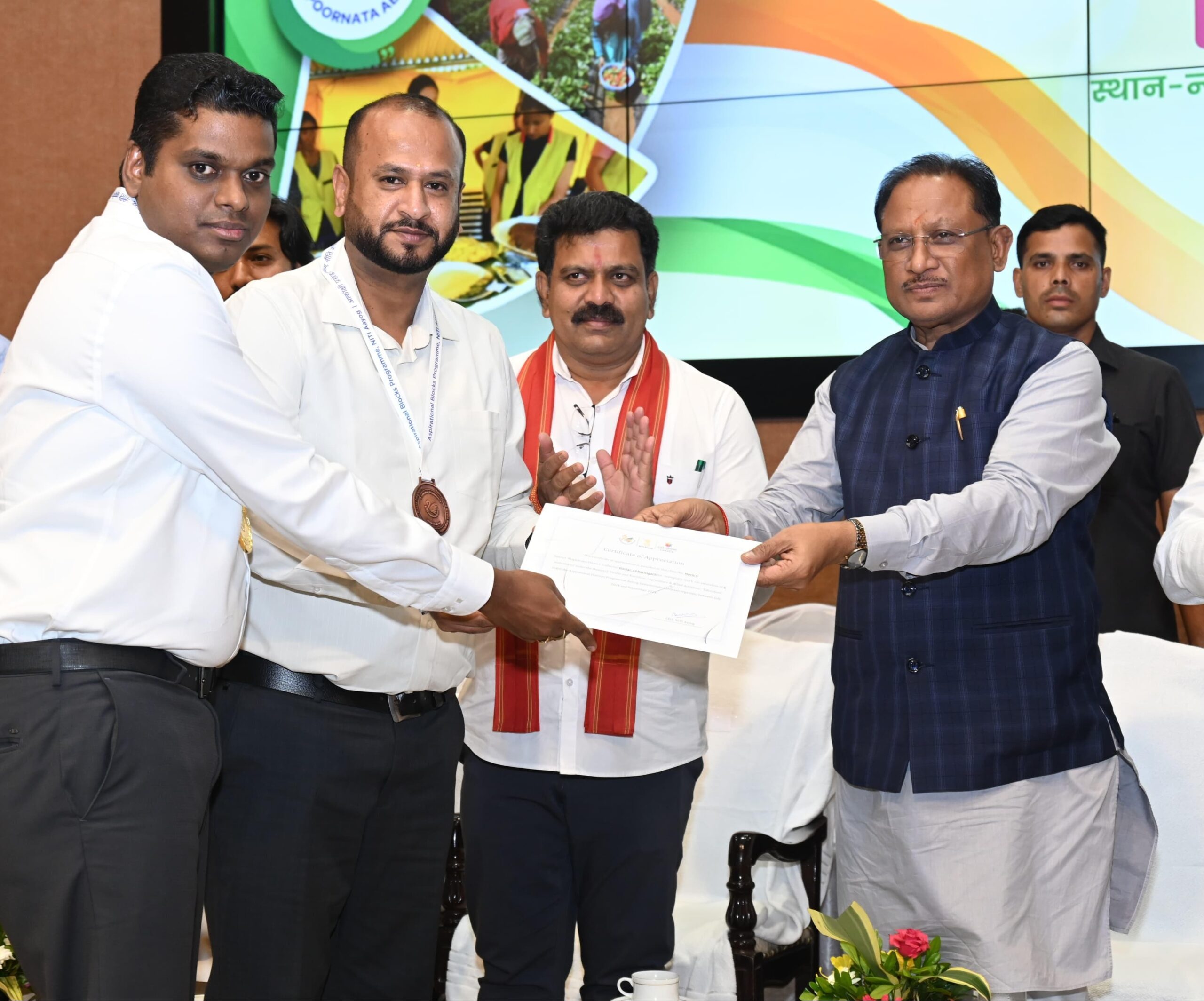 संपूर्णता अभियान के दौरान सभी छह संकेतकों में पूर्ण संतृप्ति हासिल करने वाले आकांक्षी जिलों बस्तर और कोंडागांव तथा आकांक्षी विकासखंडों शंकरगढ़, मैनपुर, माकड़ी, कोयलीबेड़ा, ओरछा और प्रतापपुर को स्वर्ण पदक प्रदान किया गया। आकांक्षी जिलों दंतेवाड़ा, कोरबा, कांकेर, नारायणपुर तथा आकांक्षी विकासखंडों लखनपुर, बैकुंठपुर, दुर्गकोंदूल, गौरेला-2, कोरबा और पिथौरा को रजत पदक प्रदान किया गया। आकांक्षी जिला बीजापुर और आकांक्षी विकासखंडों गरियाबंद, उसूर, पोड़ी उपरोड़ा, बोड़ला, तोकापाल एवं कुआंकोंडा को कांस्य पदक तथा आकांक्षी जिलों मानपुर-मोहला-अंबागढ़ चौकी, महासमुंद, सुकमा एवं आंकांक्षी विकासखंड अंबागढ़ चौकी को ताम्र पदक से सम्मानित किया गया। संबंधित जिलों के वर्तमान और तत्कालीन कलेक्टरों ने ये पुरस्कार ग्रहण किए।