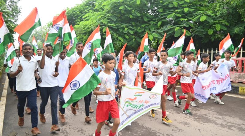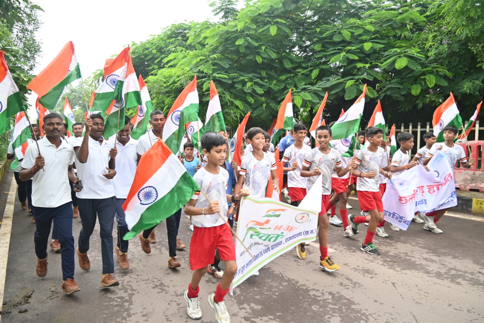 राजनांदगांव। स्वतंत्रता दिवस के अवसर पर जिला प्रशासन तथा खेल एवं युवा कल्याण विभाग द्वारा उल्लास और खुशी के माहौल में आजादी के उत्सव को मनाने के लिए अंतर्राष्ट्रीय हॉकी स्टेडियम खेल परिसर मैदान गौरव पथ राजनांदगांव में महापौर मधुसूदन यादव एवं कलेक्टर डॉ. सर्वेश्वर नरेन्द्र भुरे ने स्वतंत्रता दौड़ को हरी झंडी दिखाकर रवाना किया। साथ ही हर घर तिरंगा, हर घर स्वच्छता : स्वतंत्रता का उत्सव, स्वच्छता के संग थीम पर तिरंगा रैली का आयोजन भी किया गया। भारत माता की जय उद्घोष के साथ स्वतंत्रता दौड़ एवं तिरंगा रैली का कारवां अंतर्राष्ट्रीय हॉकी स्टेडियम खेल परिसर मैदान गौरव पथ राजनांदगांव से प्रारंभ होकर वीआईपी रोड होते हुए भदौरिया चौक, दिग्विजय स्टेडियम के सामने से वापस वीआईपी रोड होते हुए अंतर्राष्ट्रीय हॉकी स्टेडियम खेल परिसर मैदान गौरव पथ राजनांदगांव में समाप्त हुई।