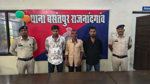 गिरफ्तार आरोपियों के नाम मनोज साहू पिता स्व. मूलचंद साहू उम्र 27 वर्ष निवासी डबरीपारा थाना बसंतपुर, रिजवान खान पिता इजराईल खान उम्र 23 वर्ष निवासी कुआं चौक नंदई थाना बसंतपुर तथा दिलीप पटेल पिता बृजलाल पटेल उम्र 50 वर्ष निवासी मोतीपुर मस्जिद के पास थाना कोतवाली बताए गए हैं।