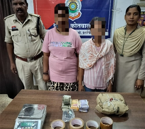 राजनांदगांव। पुलिस ने अवैध मादक पदार्थ की बिक्री करने वाली दो महिलाओं को गिरफ्तार कर उनके कब्जे से 562 ग्राम गांजा, बिक्री की रकम 16 हजार 700 रुपए, एक इलेक्ट्रॉनिक तौल मशीन और तीन नग चिलम सहित कुल 23 हजार 580 रुपए का माल जप्त किया है।