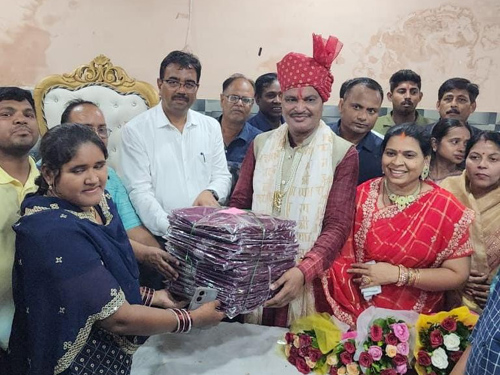महिला सफाई कर्मियों को महापौर ने तीजा पर्व पर दी सौगात, साड़ी का किया वितरण