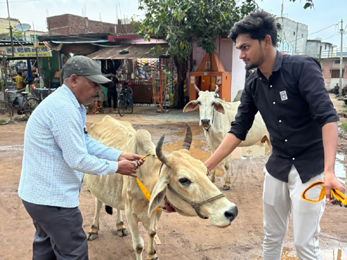 जिले में पशुओं के कारण होने वाली दुर्घटनाओं को रोकने के लिए पशुओं में लगाया गया रेडियम बेल्ट एवं पेंट