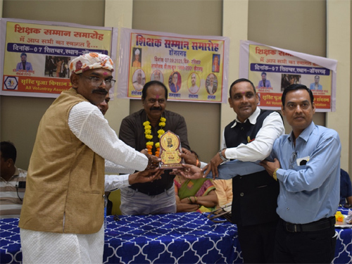 जीवन बीमा सलाहकार पुनाराम सिन्हा ने भी शिक्षक दिवस पर शिक्षकों को मोमेंटो, पेन व रुमाल भेंटकर सम्मानित किया और अपनी सफलता का श्रेय अपने गुरुजनों को दिया।