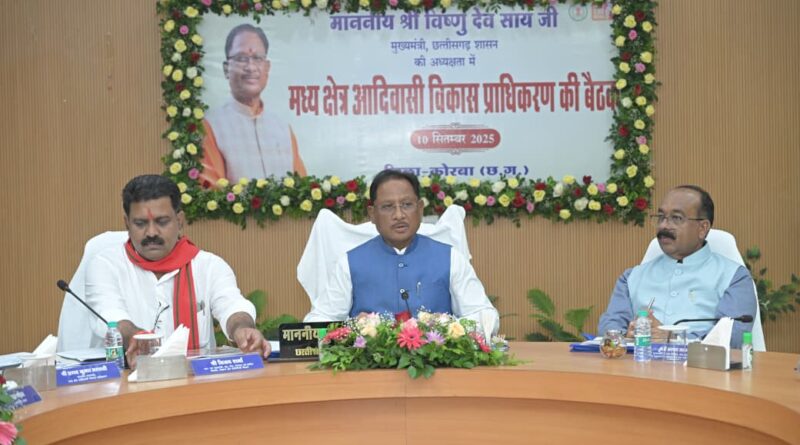रायपुर। मुख्यमंत्री श्री विष्णुदेव साय की अध्यक्षता में आज कोरबा कलेक्ट्रेट सभाकक्ष में मध्य क्षेत्र आदिवासी विकास प्राधिकरण की बैठक आयोजित हुई। मुख्यमंत्री श्री साय ने कहा कि मध्य क्षेत्र आदिवासी विकास प्राधिकरण के पुनर्गठन के बाद आज की यह प्रथम बैठक एक नए संकल्प और दृष्टिकोण के साथ आयोजित हो रही है। उन्होंने कहा कि आदिवासी समुदाय के कल्याण और समग्र विकास के लिए सरकार सभी ठोस कदम उठा रही है। विकास कार्यों के लिए संसाधनों की कोई कमी नहीं होगी।