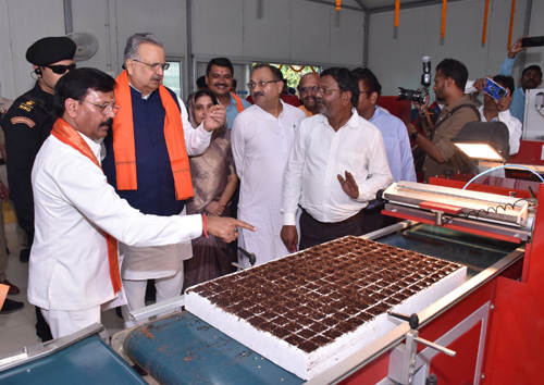 विधानसभा अध्यक्ष ने शासकीय उद्यान रोपणी पेण्ड्री में ऑटोमेटिक वेजीटेबल सीडलिंग यूनिट का किया अवलोकन