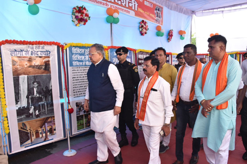 उल्लेखनीय है कि जनसंपर्क विभाग की फोटो प्रदर्शनी में प्रधानमंत्री नरेन्द्र मोदी के बचपन, पाठशाला, माँ से मिला ईमानदारी का संस्कार, हिमालय की गोद में, गांव एक तो लोगों में भेद क्यों, एक पेड़ माँ के नाम देश की हर माँ को हरित सम्मान, कर्म के प्रति समर्पण, एक मेहनती कार्यकर्ता एक कुशल संगठनकर्ता, जनभागीदारी जन-जन की सामूहिक हिस्सेदारी, ऐसा साहस जो करे उसी का नाम नरेन्द्र, देश की सेवा कैसे करूं-कहां से शुरू करूं, कलम कविता कला करूण, शिक्षा का एक नया अध्याय, डिजिटल हुई पहचान डिजिटल से भुगतान डिजिटल से जीवन आसान, अंतरिक्ष शक्ति, मेरे देश के जवान तुझकों शत-शत प्रणाम, आतंकवाद को मुंहतोड़ जवाब, महामारी के दौरान भी न थमा सुधारों का दौर, भारत का संकल्प रक्षा बलों का कायाकल्प, छत्तीसगढ़ को मिली सौगात, देशभक्ति की शक्ति, हर गरीब के सिर पर हो अपनी छत, जब दुनिया देती है प्रधानमंत्री को सम्मान बढ़ जाती है भारत की शान युवा नमों जीवन एक खोज सहित विभिन्न उपलब्धियों की जानकारी दी गई। इस अवसर पर कोमल सिंह राजपूत, कलेक्टर डॉ. सर्वेश्वर नरेन्द्र भुरे, संयुक्त संचालक जनसंपर्क डॉ. उषा किरण बड़ाईक सहित अन्य जनप्रतिनिधि, अधिकारी-कर्मचारी उपस्थित थे।