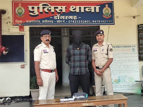 20 सितंबर की शाम पुलिस को सूचना मिली थी कि डोंगरगढ़ स्थित शेंडे लॉज की पार्किंग के पास एक युवक संदिग्ध गतिविधियों में संलिप्त है। सूचना मिलते ही डोंगरगढ़ पुलिस टीम मौके पर पहुंची और घेराबंदी कर आरोपी नागेश्वर उइके (20 वर्ष), निवासी ठेठवार पारा, वार्ड क्रमांक 12 को पकड़ा।