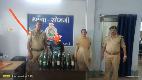 राजनांदगांव। दीपावली पर्व को लेकर जिलेभर में शांति एवं कानून व्यवस्था बनाए रखने पुलिस द्वारा चलाए जा रहे विशेष अभियान के तहत थाना सोमनी पुलिस ने ग्राम देवादा स्थित वीर जी ढाबा में दबिश देकर अवैध रूप से बीयर बेच रहे दो आरोपियों को गिरफ्तार किया है। मौके से 15 बोतल बीयर, कुल 9.750 बल्क लीटर, कीमत लगभग 3,000 रूपये जब्त की गई है।