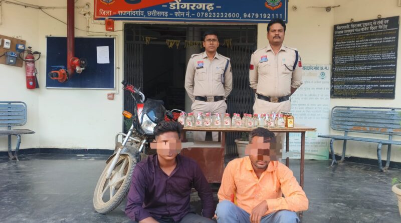 डोंगरगढ़। क्षेत्र में अवैध शराब बिक्री पर रोक लगाने के लिए डोंगरगढ़ पुलिस द्वारा चलाए जा रहे विशेष अभियान के तहत 15 अक्टूबर की रात एक बड़ी कार्रवाई को अंजाम दिया गया। ग्राम मुरमुदा की ओर से तेज़ रफ्तार में आ रहे दो संदिग्धों को पीछा कर गिरफ्तार किया गया, जिनके कब्जे से देशी और अंग्रेजी शराब की कुल 10.260 बल्क लीटर मात्रा बरामद की गई है।