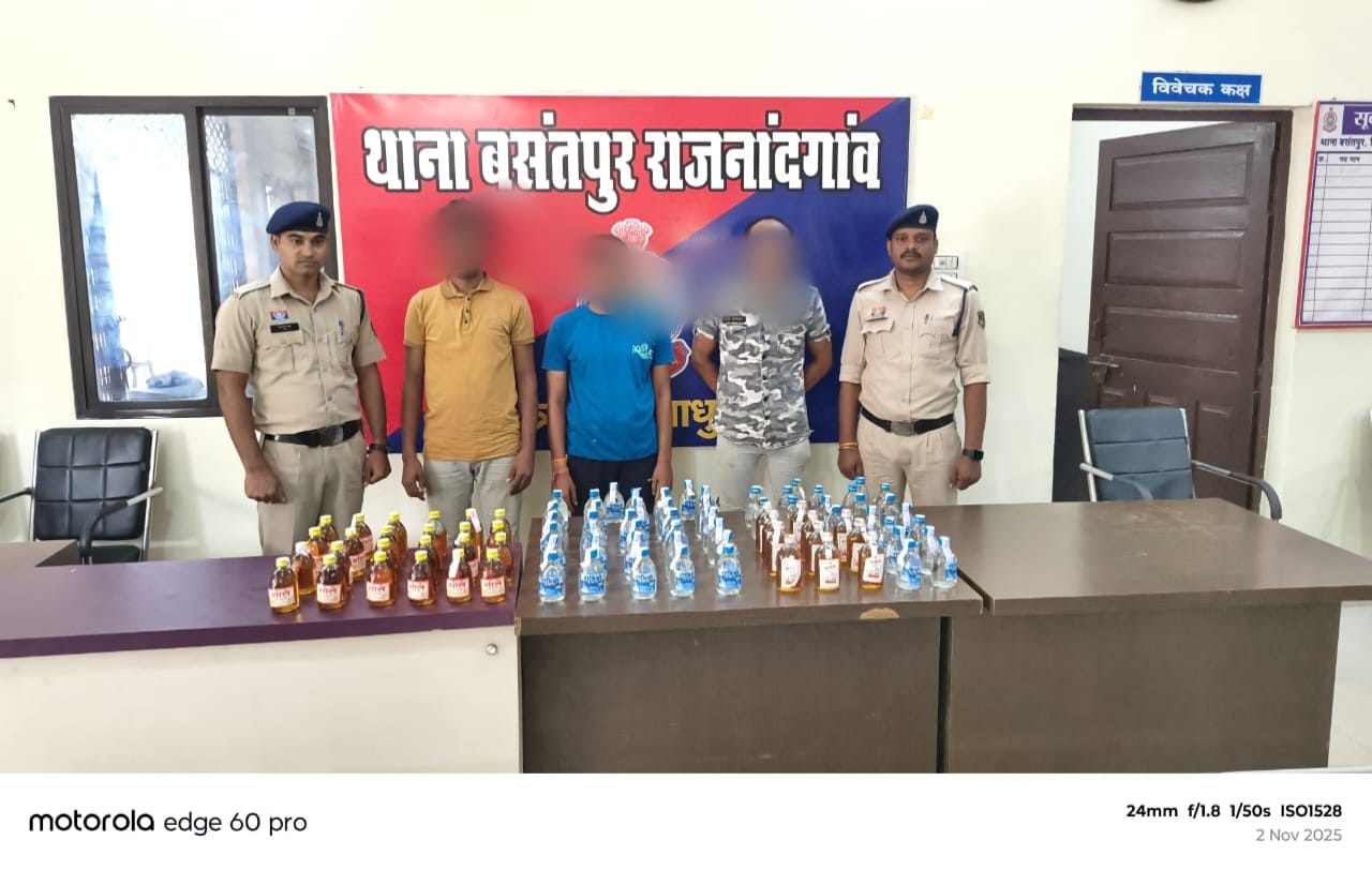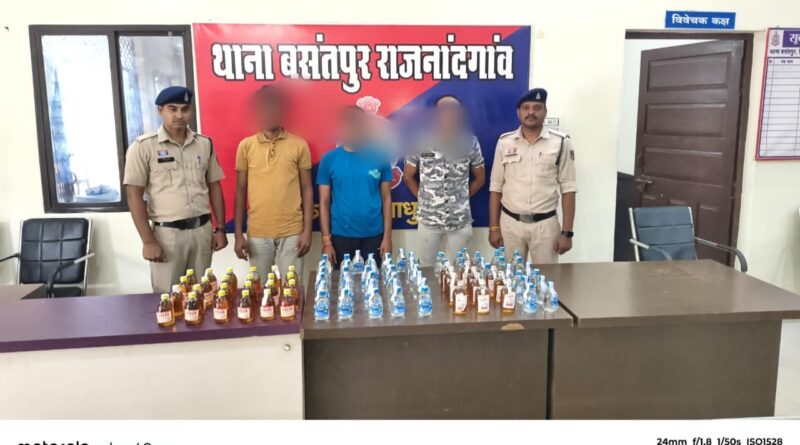 राजनांदगांव। थाना बसंतपुर पुलिस ने शराब तस्करों के खिलाफ विशेष अभियान चलाते हुए तीन आरोपियों को गिरफ्तार किया है। आरोपियों के कब्जे से 81 पौवा देशी मदिरा, 11 पौवा अंग्रेजी गोवा शराब, बिक्री रकम 250 रुपये और घटना में प्रयुक्त मो0सा0 जुपिटर वाहन जब्त किया गया।