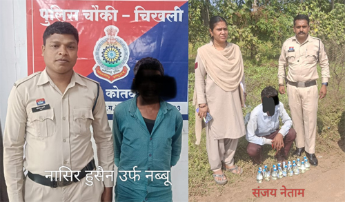 पुलिस अधीक्षक अंकिता शर्मा के निर्देशन, अतिरिक्त पुलिस अधीक्षक राहुल देव शर्मा के मार्गदर्शन और नगर पुलिस अधीक्षक वैशाली जैन (भापुसे) के पर्यवेक्षण में चल रहे अभियान के तहत 04 नवंबर 2025 को ग्राम गठुला, भेड़ीकला रोड के पास संजय नेताम (32) पुत्र स्व. रूमसिंह नेताम को 18 पौवा देशी प्लेन शराब के साथ पकड़ा गया। शराब की कुल मात्रा 3240 एमएल और कीमत 1440 रुपए है। आरोपी के खिलाफ धारा 34(1) आबकारी एक्ट के तहत कार्यवाही की गई।