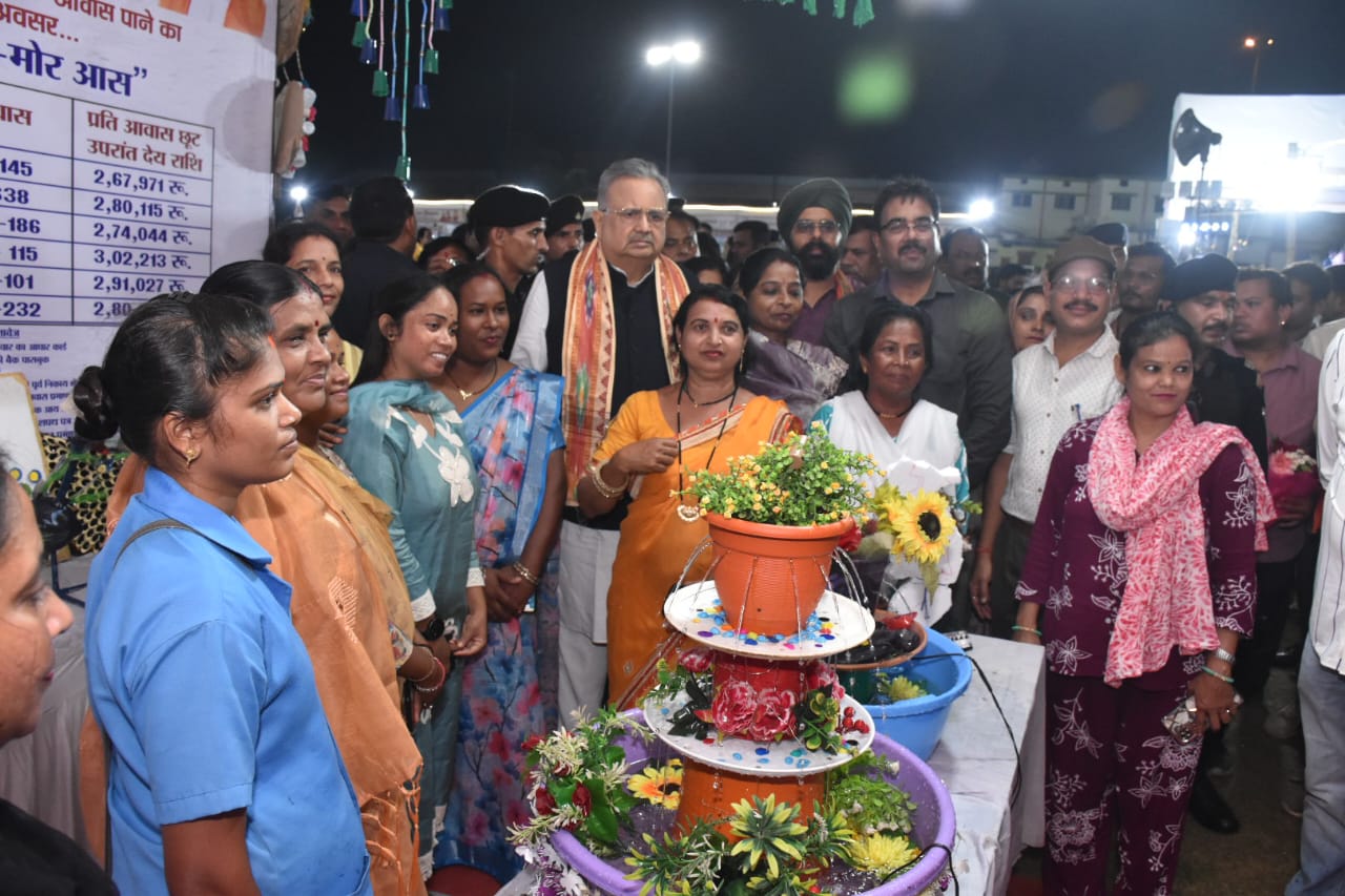 मुख्य अतिथि विधानसभा अध्यक्ष एवं विधायक डॉ. रमन सिंह ने स्टॉल का अवलोकन करते हुए स्वच्छता दीदियों द्वारा बनाई गई वेस्ट टू आर्ट कलाकृतियों की सराहना की और उनके उत्साहवर्धन किया।