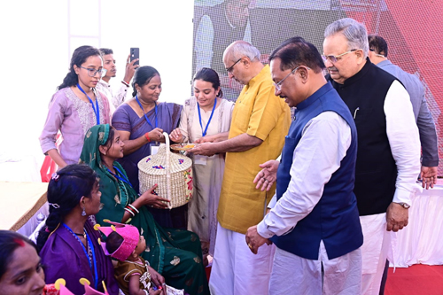 राजनांदगांव। उपराष्ट्रपति सीपी राधाकृष्णन स्टेट हाई स्कूल मैदान राजनांदगांव में आयोजित लखपति दीदी सम्मेलन कार्यक्रम में शामिल हुए। कार्यक्रम में राज्यपाल रामेन डेका, मुख्यमंत्री विष्णुदेव साय, विधानसभा अध्यक्ष डॉ. रमन सिंह, स्कूल शिक्षा मंत्री गजेन्द्र यादव, लोक स्वास्थ्य और परिवार कल्याण मंत्री श्याम बिहारी जायसवाल एवं अन्य जनप्रतिनिधि उपस्थित रहे। इस दौरान उपराष्ट्रपति सीपी राधाकृष्णन ने सुशासन पथ में विभिन्न स्टॉलों का अवलोकन किया। महिला एवं बाल विकास विभाग के स्टॉल में बच्चों के सुपोषण के लिए चलाए जा रहे पोट्ठ लईका पहल के संबंध में जानकारी ली। इस दौरान उपराष्ट्रपति ने नन्हे बच्चों का अन्नप्राशन कराया तथा गर्भवती माताओं की गोदभराई की एवं सुपोषण कीट का वितरण किया।