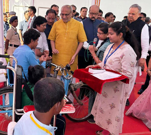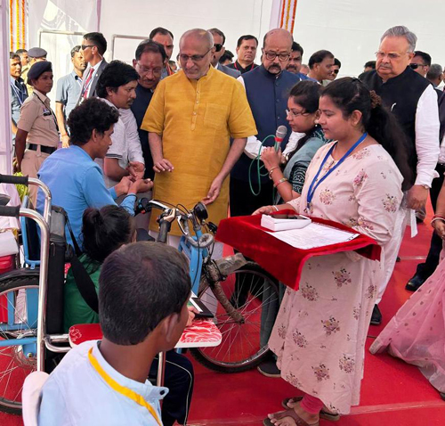 राजनांदगांव। उपराष्ट्रपति सीपी राधाकृष्णन स्टेट हाई स्कूल मैदान राजनांदगांव में आयोजित लखपति दीदी सम्मेलन कार्यक्रम में शामिल हुए। कार्यक्रम में राज्यपाल रामेन डेका, मुख्यमंत्री विष्णुदेव साय, विधानसभा अध्यक्ष डॉ. रमन सिंह, स्कूल शिक्षा मंत्री गजेन्द्र यादव, लोक स्वास्थ्य और परिवार कल्याण मंत्री श्याम बिहारी जायसवाल एवं अन्य जनप्रतिनिधि उपस्थित रहे। इस दौरान उपराष्ट्रपति सीपी राधाकृष्णन ने सुशासन पथ में सीआरसी राजनांदगांव एवं समाज कल्याण विभाग के स्टॉल में विभिन्न पुनर्वास सेवाओं एवं सहायक उपकरणों का अवलोकन किया। उपराष्ट्रपति सीपी राधाकृष्णन को सीआरसी की विभिन्न गतिविधियों एवं सेवाओं के संबंध में जानकारी दी गई। इस दौरान उपराष्ट्रपति ने एक दिव्यांग को नियुक्ति पत्र प्रदान किया। उन्होंने चार हितग्राहियों को कृत्रिम पैर (बीके प्रोस्थेसिस), मोटराइज्ड ट्राइसाइकिल, सीपी चेयर एवं सुगम्यता सहयोग हेतु मोबाइल फोन सहायक उपकरण वितरित किया। उपराष्ट्रपति को सीआरसी के लाभार्थी ने निर्मित चित्रकला को कृतज्ञता स्वरूप भेंट किया गया। उपराष्ट्रपति एवं अन्य अतिथियों ने सीआरसी के स्टॉल का भ्रमण किया तथा प्रदर्शित सहायक उपकरणों, पुनर्वास सेवाओं एवं गतिविधियों की सराहना की। इस अवसर पर महापौर मधुसूदन यादव, जिला पंचायत अध्यक्ष श्रीमती किरण वैष्णव, अध्यक्ष छत्तीसगढ़ श्रम कल्याण मंडल योगेशदत्त मिश्रा, पूर्व सांसद प्रदीप गांधी, खूबचंद पारख, सचिन बघेल, दिनेश गांधी, रमेश पटेल, संतोष अग्रवाल, अशोक चौधरी, सौरभ कोठारी, भावेश बैद, पद्मश्री फूलबासन यादव, संभागायुक्त सत्यनारायण राठौर, पुलिस महानिरीक्षक अभिषेक शांडिल्य, कलेक्टर जितेन्द्र यादव, पुलिस अधीक्षक श्रीमती अंकिता शर्मा, मुख्य कार्यपालन अधिकारी जिला पंचायत सुश्री सुरूचि सिंह, निदेशक सीआरसी डॉ. स्मिता महोबिया सहित अन्य जनप्रतिनिधि एवं अधिकारी उपस्थित रहे।