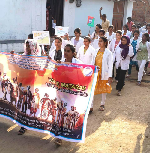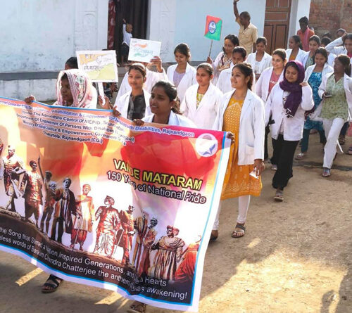 राजनांदगांव। वंदे मातरम् की 150वीं वर्षगांठ के अवसर पर प्रधानमंत्री नरेन्द्र मोदी ने देशवासियों को संबोधित किया। कार्यक्रम का समेकित क्षेत्रीय केन्द्र (सीआरसी) ठाकुरटोला में सीधा प्रसारण दिखाया गया। इस दौरान देशभक्ति, राष्ट्रीय चेतना की भावना को संजोए हुए सभी ने सीधे प्रसारण के साथ वंदे मातरम् राष्ट्रगीत का सामूहिक गायन किया। इस दौरान डिप्लोमा इन इंडियन साइन लैंग्वेज इंटरप्रिटेशन (डीआईएसएलआई) पाठ्यक्रम के छात्रों ने राष्ट्रगीत वंदे मातरम् को सांकेतिक भाषा में प्रस्तुत किया। जिससे समावेशन और एकता की भावना का प्रदर्शन हुआ। छात्रों द्वारा भारत थीम पर आधारित एक भव्य रंगोली बनाई गई। सुश्री निधि द्वारा वंदे मातरम् के ऐतिहासिक एवं सांस्कृतिक महत्व पर प्रकाश डालते हुए प्रश्नोत्तरी प्रतियोगिता और जागरूकता सत्र का आयोजित किया गया।