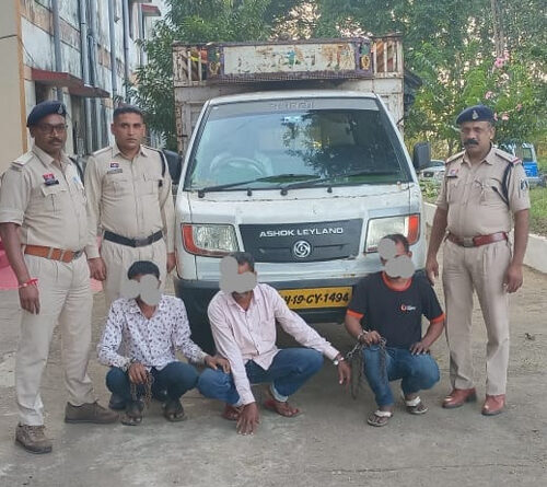 पुलिस ने वाहन चालक एवं स्वामी आत्माराम रहगडाले पिता गिरधारी रहगडाले (50 वर्ष), निवासी खोलगढ़, जिला गोदिया (महाराष्ट्र), सुनील मानकर पिता गणेश मानकर (30 वर्ष) एवं शेख अब्दुल पिता शेख रमजान (33 वर्ष) को गिरफ्तार किया।