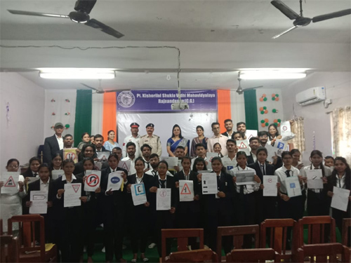 पं. किशोरीलाल शुक्ल विधि महाविद्यालय में यातायात जागरूकता अभियान आयोजित