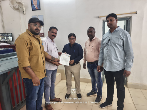 डोंगरगढ़। शहर में बिगड़ती यातायात व्यवस्था और लगातार हो रही सड़क दुर्घटनाओं को देखते हुए कांग्रेस कमेटी ने गुरुवार को अनुविभागीय अधिकारी (राजस्व) के नाम तहसीलदार को ज्ञापन सौंपा। शहर कांग्रेस अध्यक्ष विजयराज सिंह चौहान के नेतृत्व में पार्षद राहुल यादव, विनायक राव, मनोहर कंडरा सहित अन्य कार्यकर्ता तहसील कार्यालय पहुंचे।