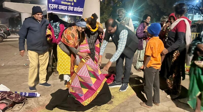 बेघर लोगों को ठंड से बचाने महापौर मधुसूदन यादव ने बांटे कंबल