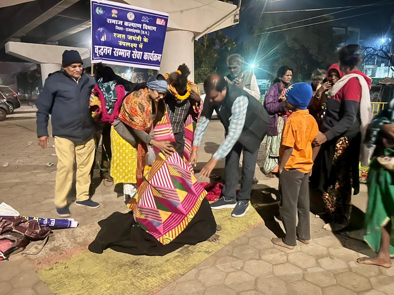 राजनांदगांव। बढ़ती ठंड और शीत लहर को देखते हुए नगर निगम द्वारा समाज के कमजोर, बेघर और जरूरतमंद लोगों के लिए राहत कार्य किए जा रहे हैं। इसी कड़ी में गुरुवार रात्रि महापौर श्री मधुसूदन यादव ने समाज कल्याण विभाग की टीम के साथ फ्लाईओवर के नीचे अस्थायी रूप से निवासरत लोगों को कंबल वितरित किए और उन्हें रैन बसेरा में रहने की समझाइश दी।