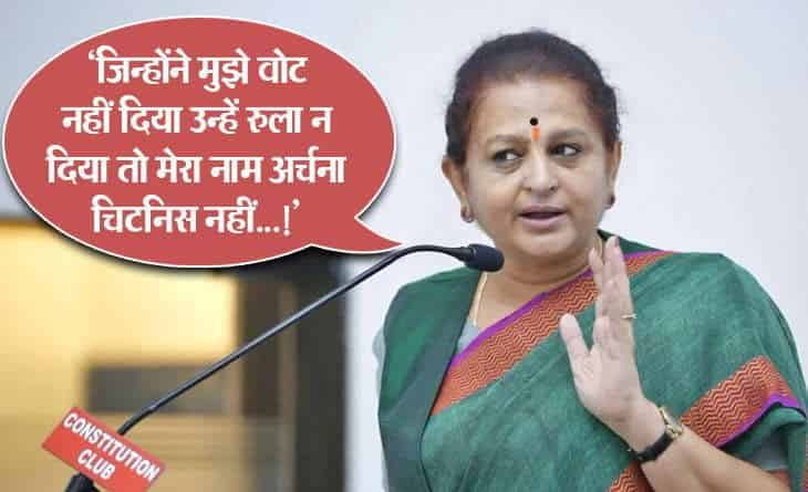 मध्यप्रदेश विधानसभा चुनाव में हार चुकी की भाजपा मंत्री अर्चना चिटनीस ने एक बेहद विवादित बयान दिया है. कमल चौराहे, भोपाल में एक सभा को संबोधित करते हुए चिटनीस द्वारा दिया गया बयान सोशल मीडिया में वायरल हो रहा है.