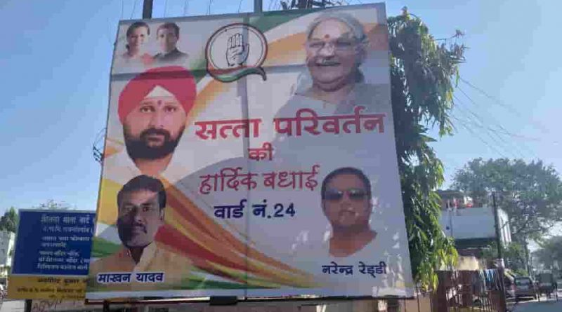 कांग्रेसी प्रचार प्रसार में गुंडों की कमाई लगी है. हिस्ट्रीशीटर की फोटो कांग्रेस के प्रचार प्रसार और जीत के बाद बधाई देने के लिए लगे फ्लैक्स में नजर आ रही है.