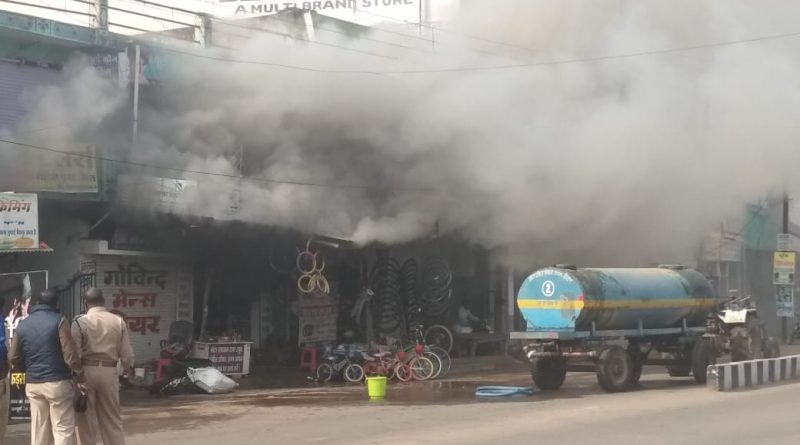 सायकल दुकान में लगी आग पहुंची जूता-कपड़ा दुकान तक