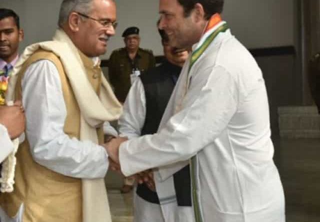 राहुल गांधी का भूपेश बघेल ने किया स्वागत