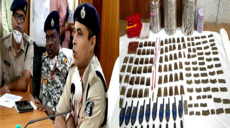 पुलिस ने गातापाली और बागनदी के जंगलों से स्टील के डिब्बों में जमीन के नीचे डंप किए गए हथियार, वॉकीटाकी, कारतूस सहित अन्य सामान बरामद किए हैं.