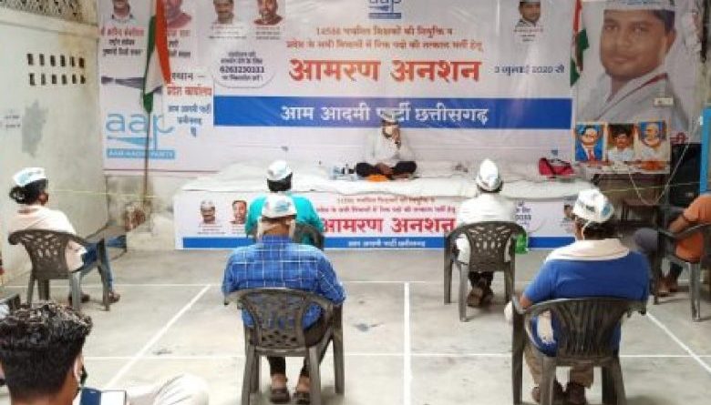 प्रदेश व देश में चल रही सियासी उठापटक के बीच राजधानी रायपुर में आम आदमी पार्टी ( आप ) का अनशन अनवरत जारी है. 19 जुलाई से सभी जिला मुख्यालयों में अनिश्चितकालीन आमरण अनशन शुरू करने का ऐलान पार्टी की ओर से किया गया है.