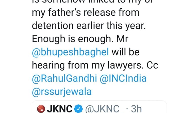 नेशनल कांफ्रेंस ने आगे कहा है कि वे भूपेश बघेल के अपमानजनक बयान और अपने वकीलों से बात कर रही है, और आगे कार्रवाई करने जा रही है.