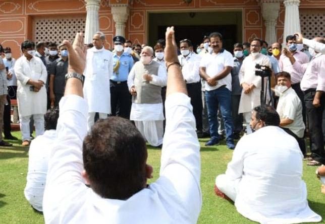 राजस्थान के मुख्यमंत्री अशोक गहलोत अपनी सरकार का बहुमत साबित करने की मांग को लेकर शुक्रवार को कांग्रेसी विधायकों के साथ राजभवन पहुंचें. कांग्रेस का दावा है कि उनके पास 109 विधायकों का समर्थन है.