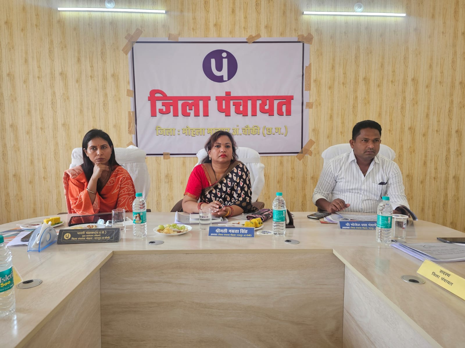 मोहला। जिला मोहला-मानपुर-अंबागढ़ चौकी के जिला पंचायत की प्रथम सामान्य बैठक संपन्न हुआ। जिला पंचायत की सामान्य बैठक पंचायत कार्यालय (डीपीआरसी भवन माडिंग पिडिंग धेनु) मोहला में आयोजित किया गया। बैठक की अध्यक्षता जिला पंचायत की अध्यक्ष श्रीमती नम्रता सिंह ने की। इस बैठक में जिला पंचायत उपाध्यक्ष श्री भोजेश शाह मंडावी सभी सदस्यगण, मुख्य कार्यपालन अधिकारी जिला पंचायत सुश्री भारती चंद्राकर, तथा जिला पंचायत के अधिकारी उपस्थित रहे। बैठक में महत्वपूर्ण विषयों पर विचार-विमर्श किया गया। इनमें स्थायी समितियों के निर्वाचन, सभा में स्थायी समितियों के गठन एवं निर्वाचन से संबंधित विषय पर विस्तार से चर्चा की गई। साथ ही “वन नेशन, वन इलेक्शन” प्रस्ताव – सभा में “एक राष्ट्र, एक चुनाव” विषयक प्रस्ताव प्रस्तुत किया गया। जिसे सर्वसम्मति से पारित किया गया।